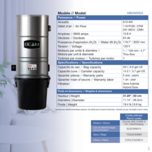 The Beam 205 central vacuum is ideal for small spaces and homes where the room for the power unit is limited. This model offers exceptional suction power, surpassing the best portable vacuum cleaners.