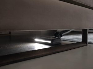 The Miele Triflex HX2 Pro cordless vacuum is ideal for large spaces. Includes two batteries for double the run-time and soft brushroll for delicate hardwood floors., plus a strong LED light on the front of the electric carpet brush.