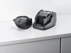 The battery charger and a spare battery help to double the running time of your Miele Triflex. With 2 batteries you have a run time from 30 – 120 minutes. These two batteries will vacuum approximately 2600 square feet.