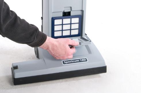 Nilfisk-Advance 15 and 18 inch Spectrum dual-motor upright vacuums delivers the superior performance results expected from Nilfisk-Advance vacuums. Upright vacuums rely on a combination of dirt pickup to remove soil from carpets and filtration to ensure that dust and other airborne particles stay captured. The Spectrum dual motor has a total of 1350 watts of power.